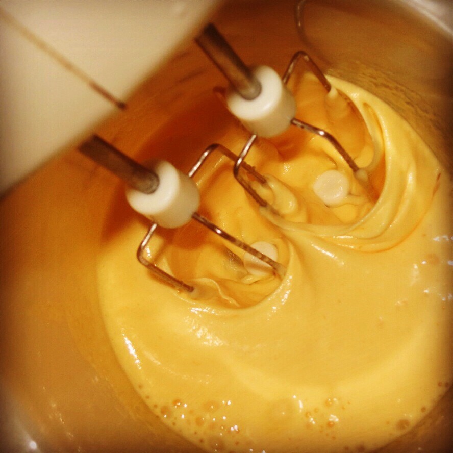 Zuerst schlagt ihr die Sahne mit einem Rührgerät steif. In einem zweiten Gefäß (und mit sauberen Schlägern) schlagt ihr das Ei, die Eigelbe und den Puderzucker zu einer halbfesten schaumigen Masse. Nun rührt ihr zuerst den Holundersirup in die Eimasse, anschließend hebt ihr die Sahne unter.