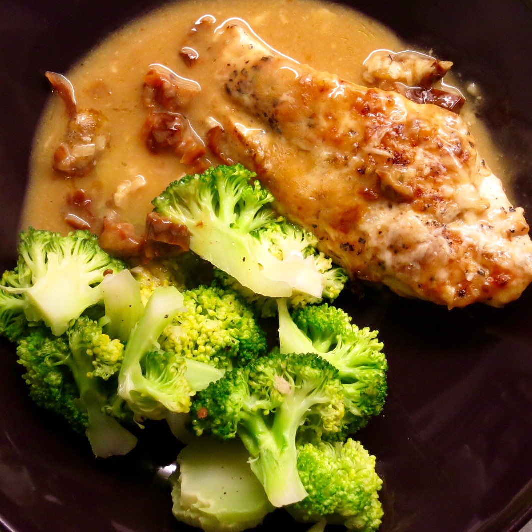 Huhn und getrocknete Tomaten in Parmesan-Soße mit Broccoli