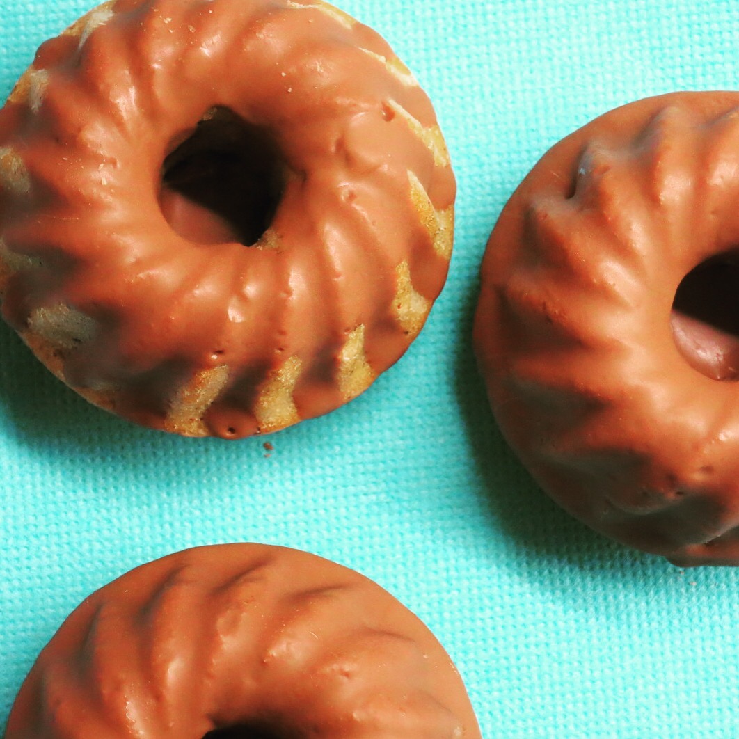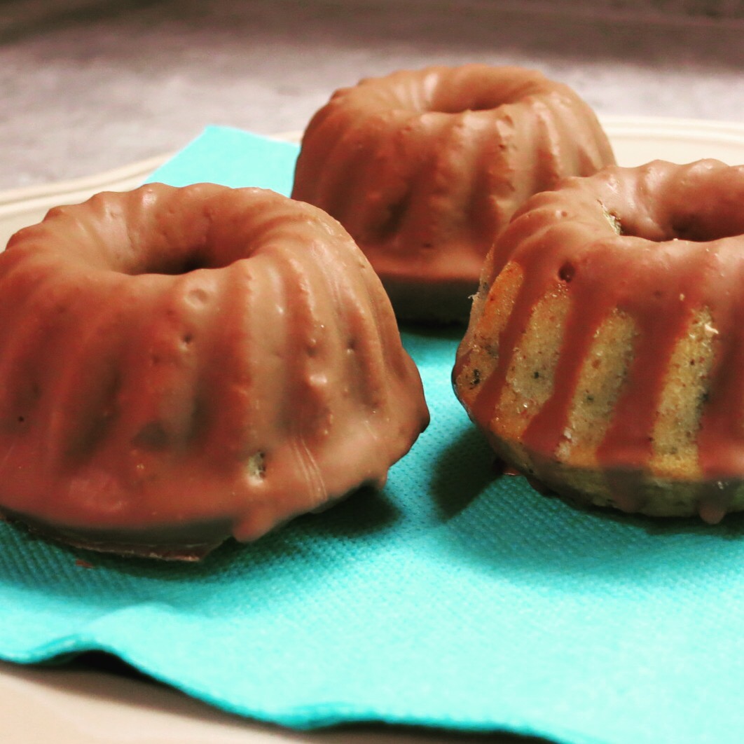 Nun fettet ihr eine Backform oder ein Backblech ein und verteilt den Teig darin bzw. darauf. Ich habe für die Fotos kleine Gugelhupf-Formen verwendet. Auch Muffin-Förmchen könnt ihr nehmen. Die Kuchenform könnt ihr euch also nach Belieben aussuchen. Schieb sie nun auf einem Rost in den Backofen und backt sie je nach Form länger oder kürzer (Backblech: ca. 30 min; Muffins/kleine Gugl: ca. 20 min; großer Guglhupf: ca. 45 min). Der Stäbchentest zeigt euch, ob der Teig durch ist.