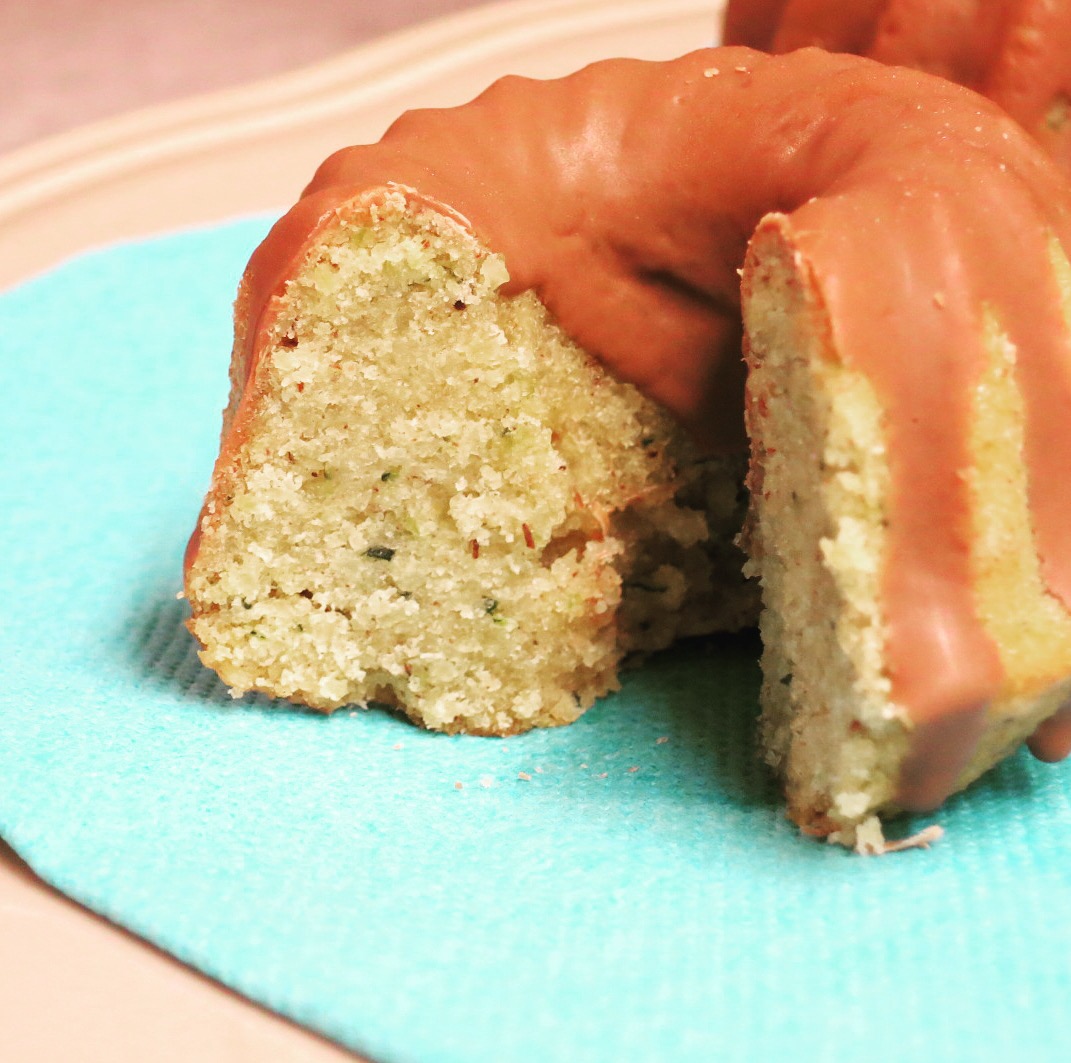Der Zucchini-Kuchen ist bestimmt kein wahnsinnig gesundes Essen. Wir sprechen ja immer noch von Kuchen. Aber er hat immerhin zwei Komponenten, die ihn gesünder machen als manche andere Rührkuchen. Da wären zum einen die Nüsse zu nennen – reich an ungesättigten Fettsäuren und Protein -, die ein Teil des Mehls ersetzen. Zum andern sind da die Zucchini, die dem Kuchen mehr Masse für fast null Kalorien und außerdem Saftigkeit ohne Fett verleihen.