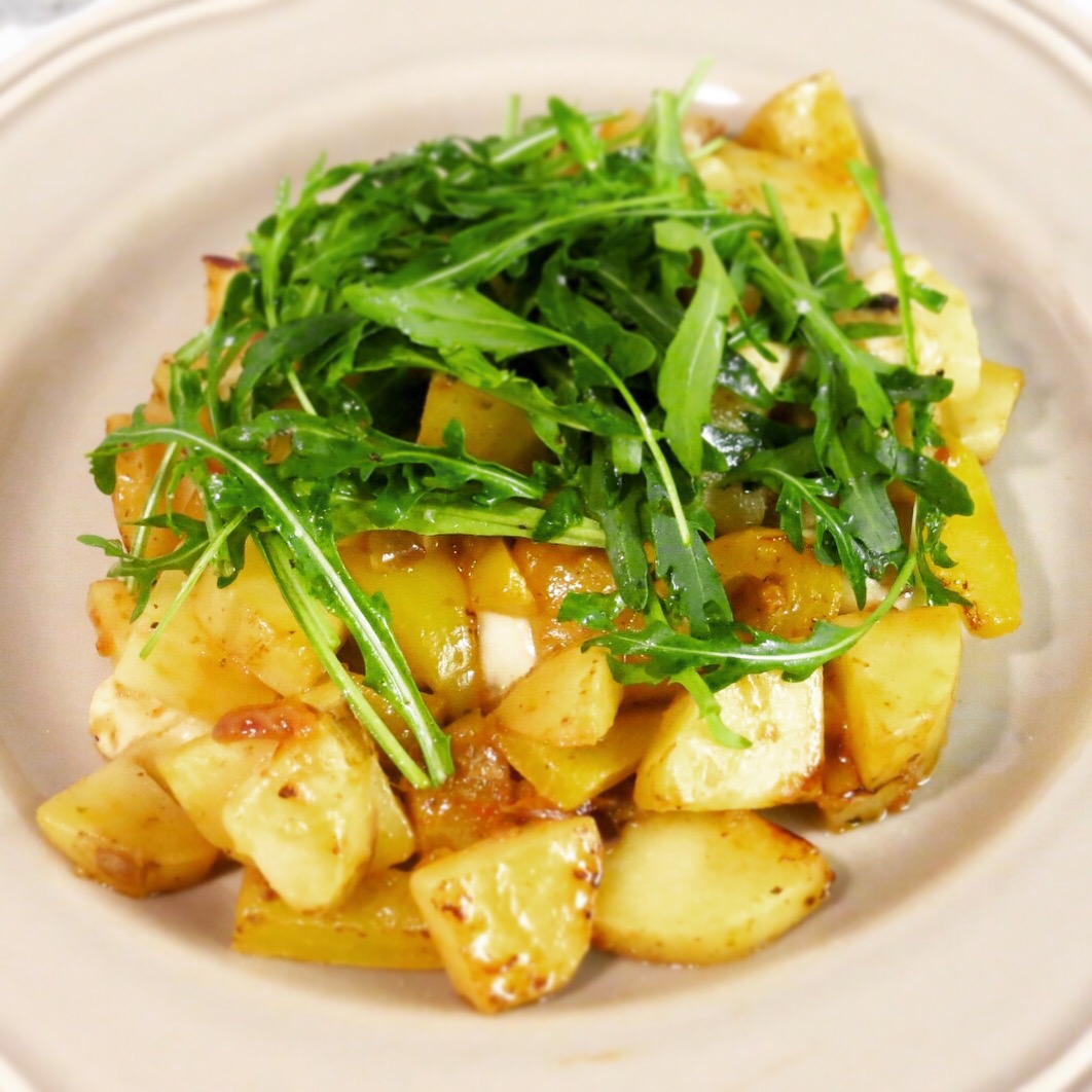 Kartoffeln sind die perfekte Grundlage für ein leckeres und sättigendes Pannengericht. Alternativen wie Reis, Nudeln oder Baguette haben ernährungstechnisch gesehen dagegen keine Chance. Das zeige ich euch mal an einem kleinen Vergleich. Während Kartoffeln auf 70 Kalorien pro 100 Gramm kommen, sind es bei gekochtem Reis 120 und bei Nudeln 150. Baguette hat sogar 240 Kalorien. Kartoffeln bestehen aus 15 Gramm Kohlenhydrate und 2 Gramm Protein. Reis hat mit 27 Gramm wesentlich mehr Kohlenhydrate, aber mit 2,5 Gramm nur minimal mehr an Protein. Nudeln bestehen aus 30 Gramm Kohlenhydrate und 2,5 Gramm Protein. Und Baguette auf 40 beziehungsweise 7,5 Gramm. Nebenbei können Kartoffeln ganze 15 Milligramm Vitamin C pro 100 Gramm haben, während die anderen drei Beilagen gar kein Vitamin C enthalten.