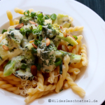 PDF-Druckversion und Rezept-Download: Pasta in Bergkäsesoße mit grünem Gemüse