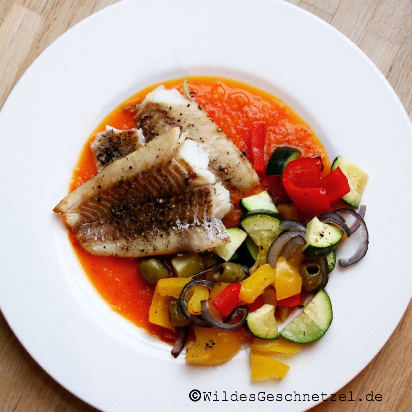 Im Sommer muss Kochen schnell gehen und das Essen darf nicht so schwer sein – finde ich. Deshalb gibt es heute Fisch aus dem Ofen mit Gemüse und einer leichten Soße. Dieses Gericht macht richtig was her auf dem Teller, steht aber ruckzuck, in maximal 25 Minuten auf dem Tisch. Ein prima Sommergericht also.