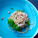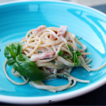 PDF-Druckversion und Rezept-Download: Spaghetti mit Speck an Basilikum-Mascarponecreme