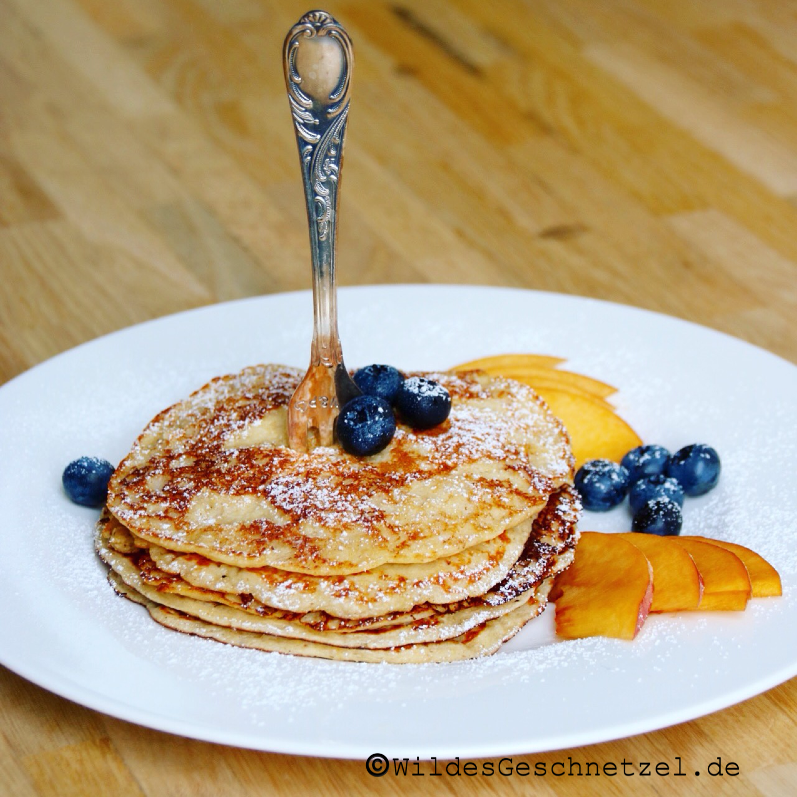 Pfannkuchen sind eine Wissenschaft für sich. Auf der einen Seite gibt es unzählige Anleitungen für die angeblich perfekten Pancakes. Auf der anderen Seite hat doch jeder seine persönliche Lieblingsvariante. Und dann kommt es noch darauf an, ob die Pfannkuchen nur süße Sattmacher sein sollen – wogegen gar nichts einzuwenden ist 🙂 – oder ob sie vielleicht außerdem gesund, zuckerfrei oder ohne Mehl sein sollen. Wer eine neue leckere und gesunde Variante ausprobieren will, dem lege ich diese ans Herz: