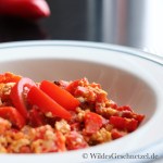Ich stehe total auf Eierspeisen. Seien es Rührei, Omelette, Kaiserschmarren oder Crepes. Diese Woche habe ich etwas Neues entdeckt: Menemen aus der Türkei. Menemen wird meist zum Frühstück, aber auch zu anderen Tageszeiten gegessen und kann – wie ein deutsches Rührei auch – mit Zutaten variabel ergänzt werden. Ich habe eine ganz einfache Variante für mich entdeckt und möchte sie hier mit euch teilen. Alle türkischstämmigen Leser mögen mir verzeihen, dass ich rote Paprika verwendet habe, statt grüne. Und dass ich noch Kreuzkümmel hinzugefügt habe – ich liebe einfach Kreuzkümmel.