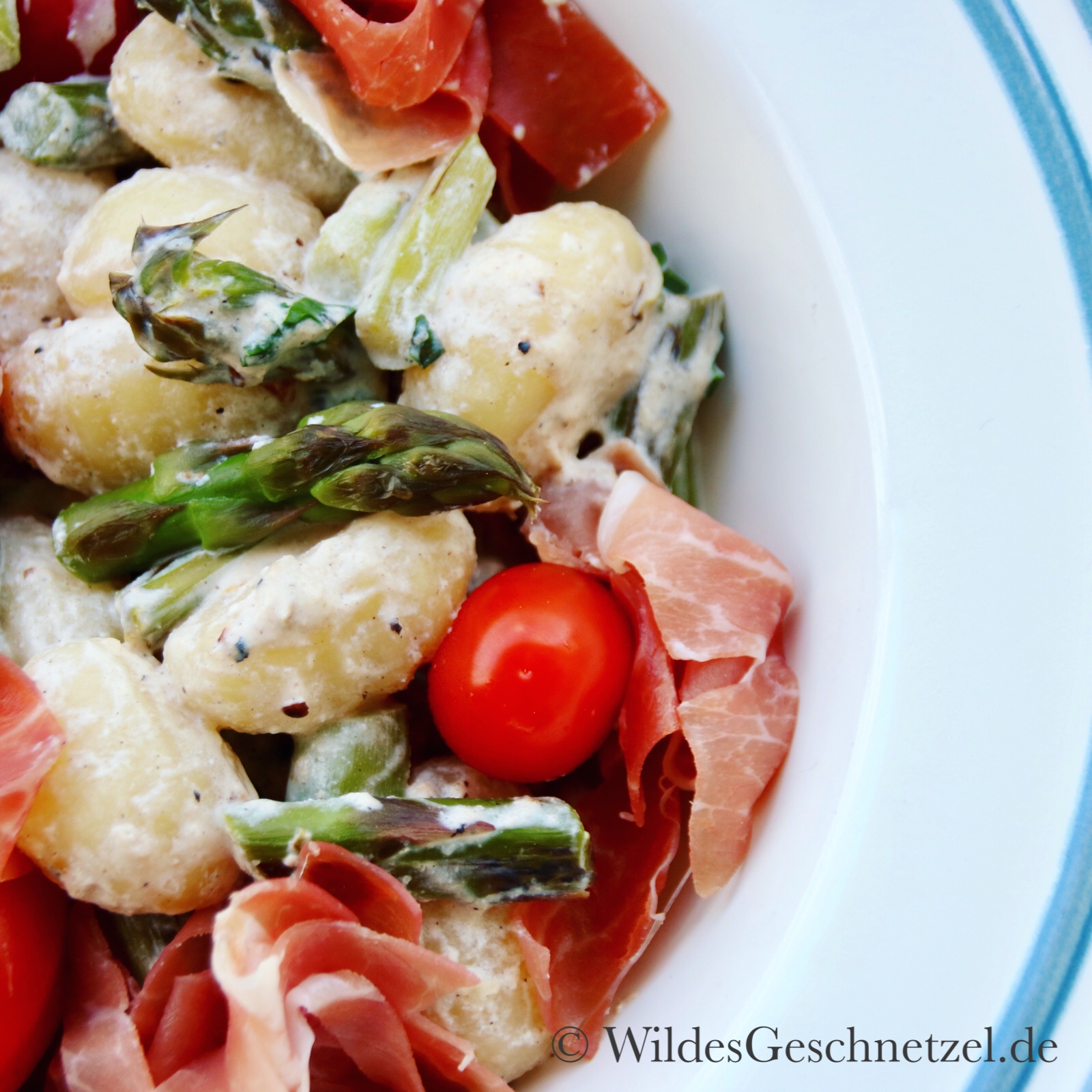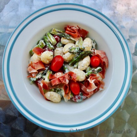 Habt ihr dieses Jahr schon Spargel gegessen? Falls es unter euch wirklich noch jemanden gibt, der jetzt mit nein antwortet – dann wird es höchste Zeit. Wie wäre es mit mediterranen Gnocchi mit würzigem Parmaschinken und einer cremigen Parmesan-Ricotta-Soße? Sie stehen ruck-zuck auf dem Tisch und sind sooo lecker. Perfekt für einen lauen Frühlingsabend auf dem Balkon mit einem frischen Weißwein.