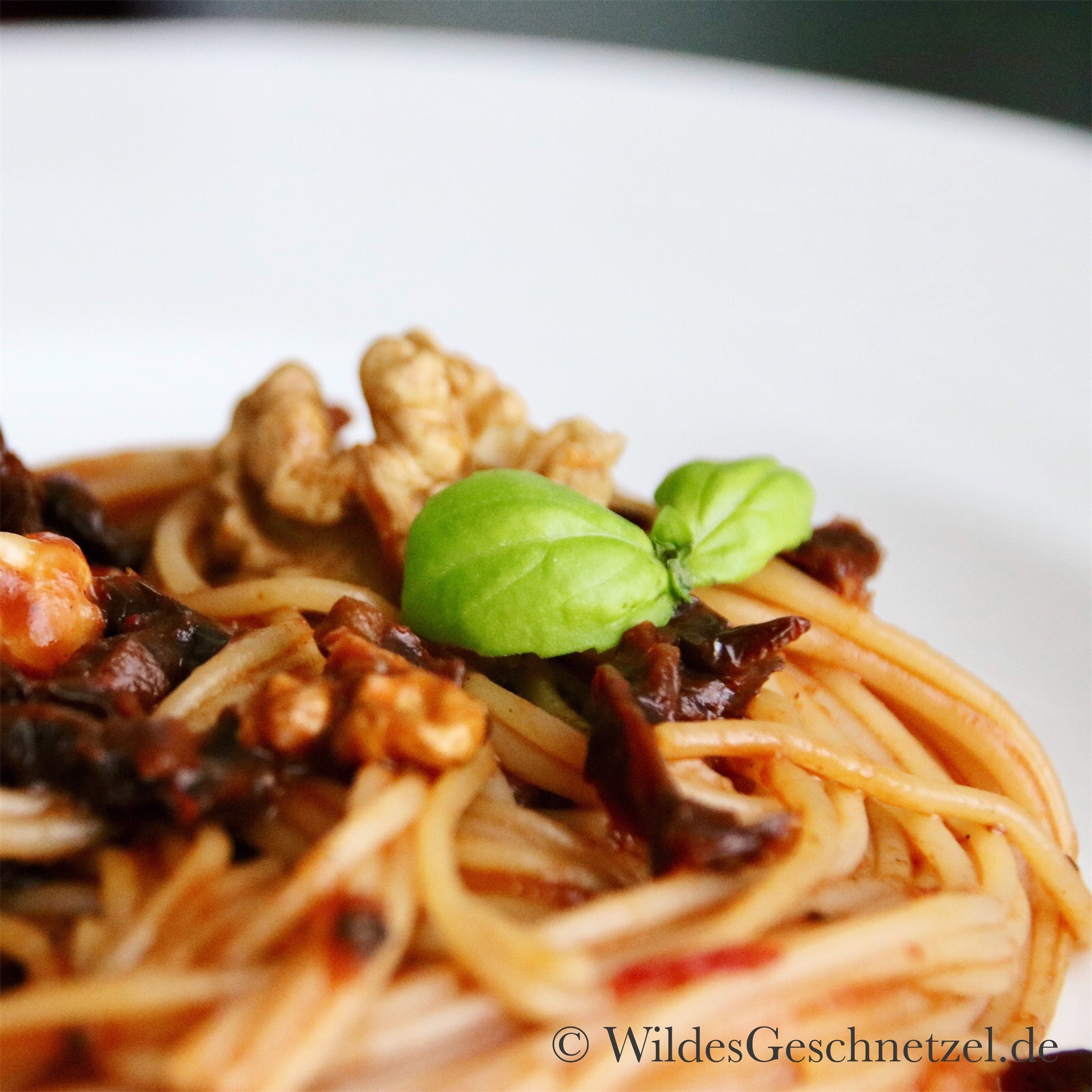 Wer mag noch so gern Walnüsse wie ich? Ich finde, Walnüsse sind ein bisschen wie Käse. Sie machen fast jedes Gericht besser. Aber im Gegensatz zu Käse machen Walnüsse richtig was her. Sie haben was Elegantes und verleihen dem Gericht eine bissfeste Konsistenzkomponente. Also spart nicht mit den leckeren Nüsschen.