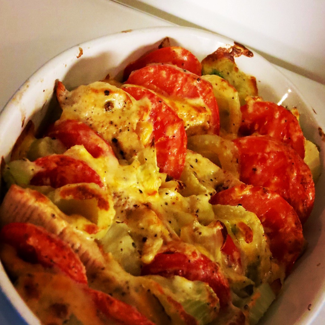 Aufläufe erinnern mich immer an meine Studienzeit. Denn in meiner Studienstadt Marburg gab es etliche Restaurants, die sich auf Aufläufe spezialisiert hatten. Das waren riesige Portionen, sie waren günstig und unglaublich lecker. Dort konnte man sich ordentlich satt schlemmen. Manchmal reichten die Portionen sogar für zwei Mahlzeiten und ich hab mir die zweite Hälfte einpacken lassen. In München vermisse ich solche Restaurants. Deshalb muss ich öfters selbst Auflauf kochen. Zum Beispiel den hier: